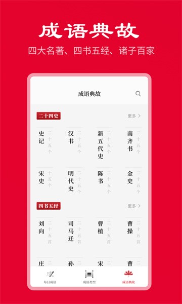 5、成语典故:涵盖四大名着、二十四史、四书五经、诸子百家、明清小说、诗词大家等等
