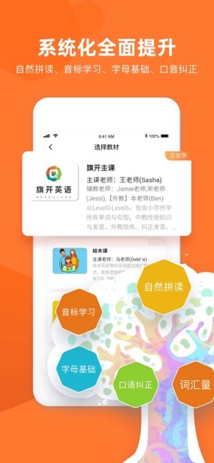 旗开英语一对一陪练是专门为儿童提供英语口语陪练学习的应用软件,带来零基础学习字母、自然拼读、音标课小学课程内容,集课前预习、课中学习、课后复习为一体,带来完整的学习成长体系,老师一对一授课教学,中外双师同步,全面提升英语能力!