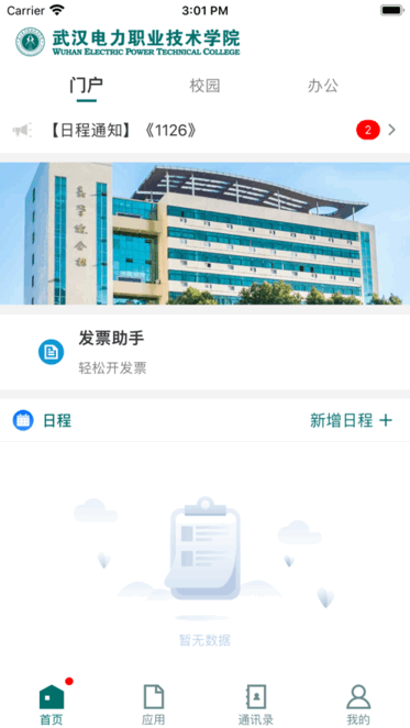 武汉电院手机版是一款武汉电力职业技术学院的智慧校园app,提供办公应用、常用应用、校园服务等功能为一体,待办任务事项随时查看,快速处理,轻松查询信息,掌握最新校园动态资讯,提高教务教学管理效率,随时沟通交流,便利校园日常生活!