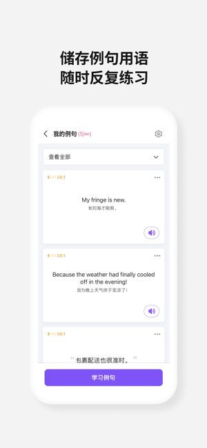 -- 收藏句型与单词:练习和重复所选例句与单词。