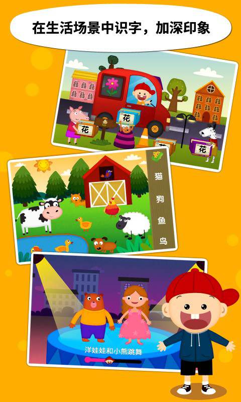 -- 把枯燥的识字练习变成孩子喜爱的趣味游戏,寓教于乐,通过玩游戏的过程,让孩子在潜移默化中学会识字,告别填鸭式教学。
