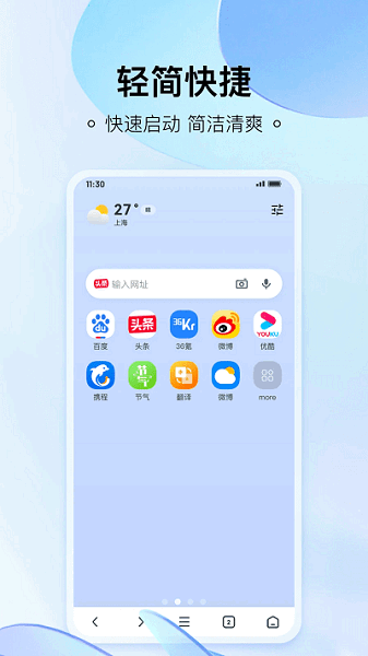 -- 性能优异:安装包体积小,高速下载,浏览更省流量,运行快速