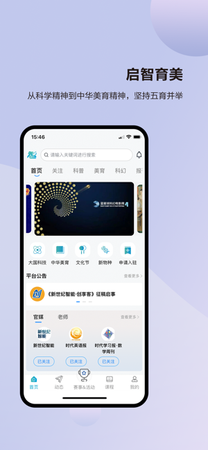 凤凰少年智APP将推出一批面向青少年的科普和美育课程,开发一批适合青少年参与的科学与艺术活动与赛事,完成“趣说科学”“艺术殿堂”等课程,开展科学与想象力训练营、数学文化节、“凤凰少年智”小编辑评选等活动。