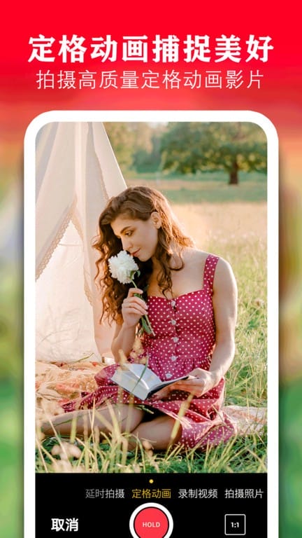 视频制作:一键开启录制视频、延时拍摄、定格动画、拍摄照片,视频比例可调