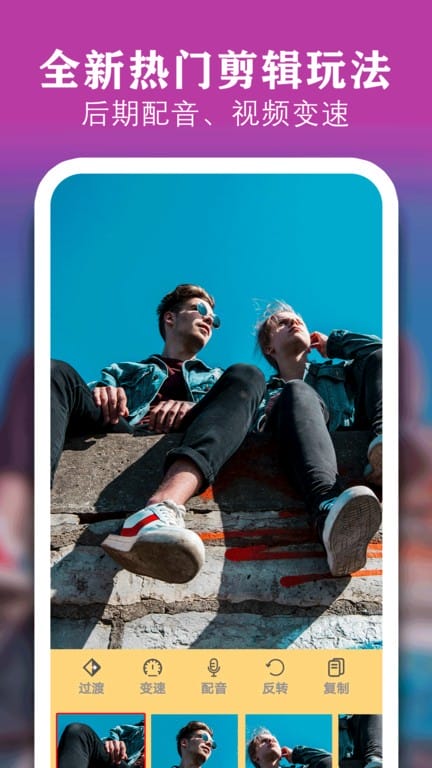 视频编辑app是一款所有功能免费使用、超清导出无水印的视频编辑、视频剪辑、视频制作软件;集美拍、延时摄影、定格动画、特色滤镜、视频拼接、视频加速、视频配音等功能于一体,支持视频旋转、视频翻转、视频移轴、视频反转、视频倒放、滤镜、音乐、音效、字幕、导出、分享功能强大且应用丰富,让您完成短视频/小视频拍摄,制作热门Vlog大片、成为视频剪辑达人。