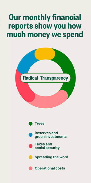 我们的月度财务报告披露了我们所有的项目,这样你就可以确切地看到我们的利润流向了哪里。我们是一家非营利性科技公司,将100%的利润用于气候行动。