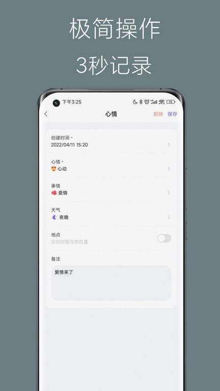 极简单的操作方式,只需要3秒就可以快速记录心情