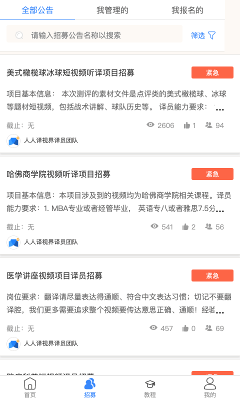 人人译视界,专业的视频翻译协作平台,在这里你可以轻松加入到翻译工作中,参与自己的翻译校对工作,通过不断音视频翻译提升自身翻译能力,还可以通过提供具有竞争力的翻译作品来获取收益,有志于翻译工作的用户可以下载使用!