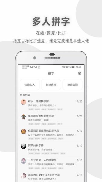是好友间的一种码字速度比拼功能,用户创建拼字房间后设定拼字类型和数值,邀请好友加入房间开始拼字,提高用写作激情。