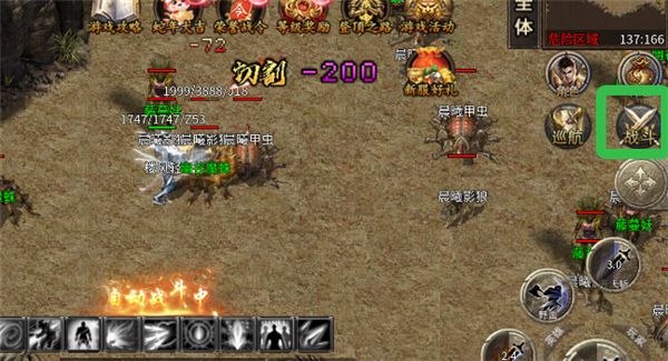 3、游戏会自动进入战斗状态,玩家可点击战斗退出自动战斗状态,也可双击地面退出。