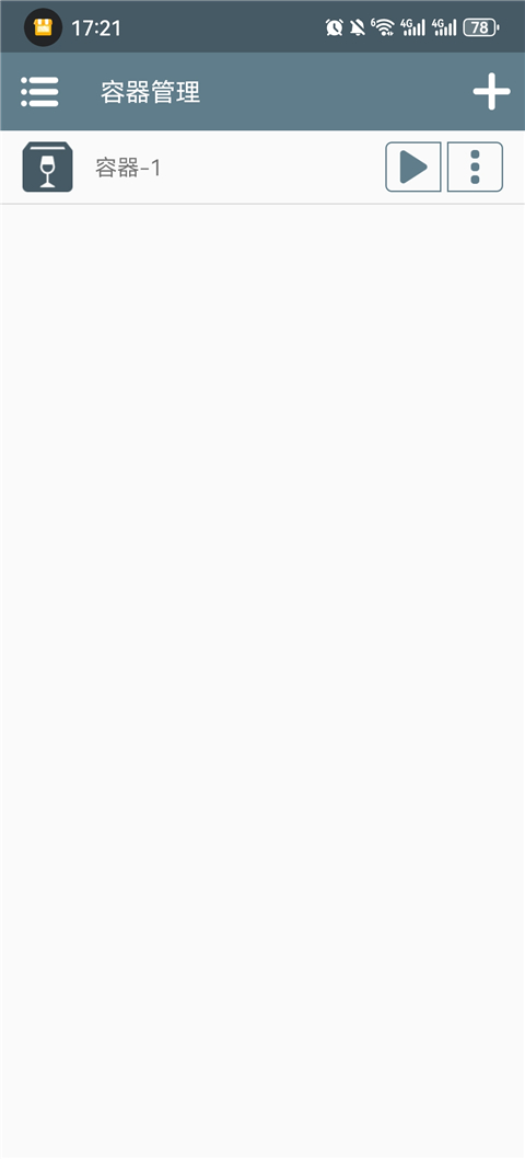 1、启动游戏后,点击右上角“+”图标创建容器。