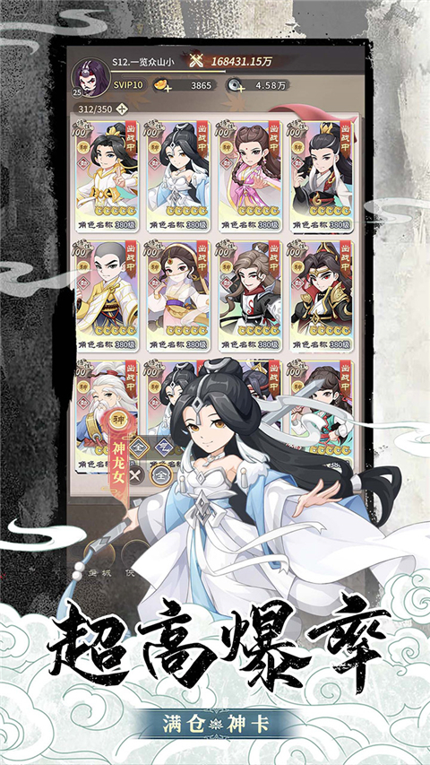2、超高爆率加持,让你轻松集齐神卡,满仓战力轻松到手。