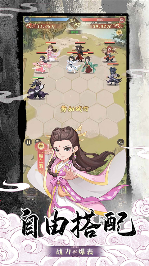 1、这款经典武侠自走棋手游,以江湖为背景,尽显新国风韵味。