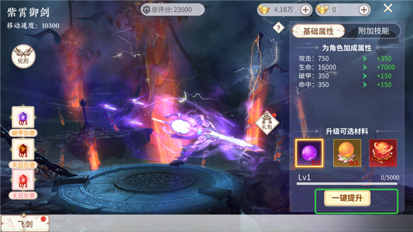飞剑是苍岚大陆上每位修士常用的飞行法宝,消耗培养丹可以提高飞剑的等级。