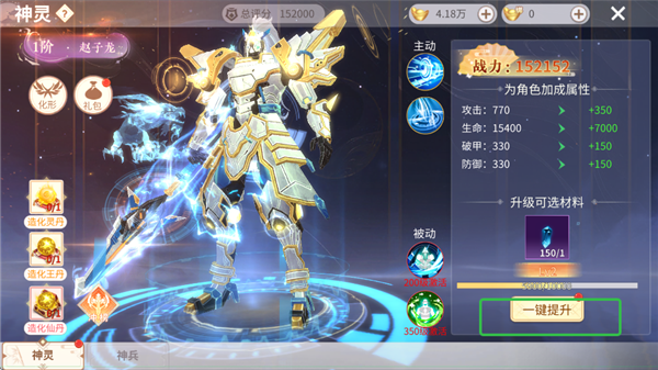 神灵有赵子龙、孙悟空、关云长、黑悟空。通过和怪物作战可获得怒气气,怒气满后可化身神灵。