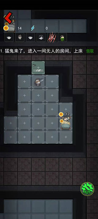 2、进入房间后直接上床,通过睡觉涨金币,建造装备,无论发生什么事千万不能下床,如果有怪人破门而入,也不要下床