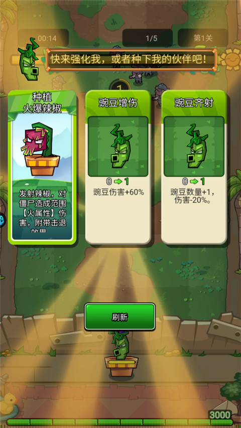 2、击败僵尸有几率获得阳光,收集阳光可以帮助吧在局中升级获得额外的属性加成。