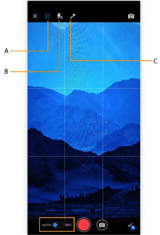 您可以使用“自动”模式来设置焦点和白平衡,这样只需轻轻一点就可进行拍摄。您也可以使用提供更多功能控制(例如,ISO、快门速度、白平衡、分辨率和帧速率)的“专业”模式。