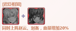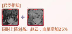 同时上阵刘备、赵云,血量增加25%。