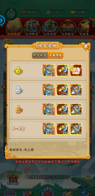 五、山神祝福排行奖励获得,排行不同奖励不同