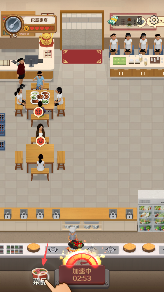 3、点击屏幕最下方的“营业倍数”,增强员工工作的积极性,更快得做菜,上菜。