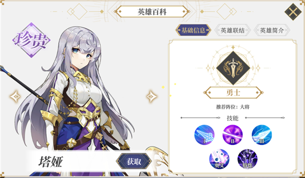 塔娅:米雅诺的下位替代,若前期培养勇士队3SSR过于吃力,可用此角色替代米雅诺。