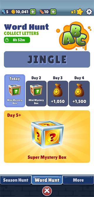 每日挑战任务也是地铁跑酷的游戏一大特色,完成每日挑战可以获得特殊奖励,游戏界面点击暂停按钮来查询每日挑战需要完成事项,明确需要做些什么才可获得每日挑战特殊奖励。当任务是收集字母组成单词“ROLL”时,只要完成任务便可获得神秘宝箱。