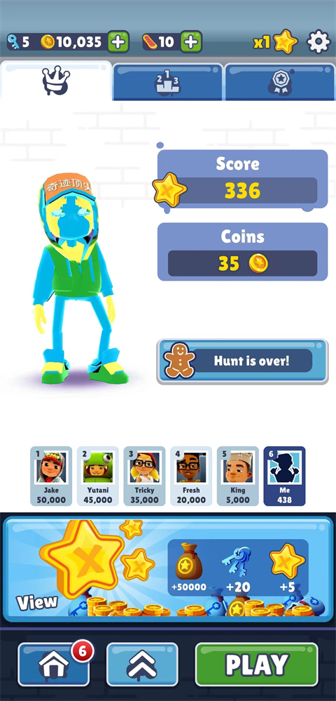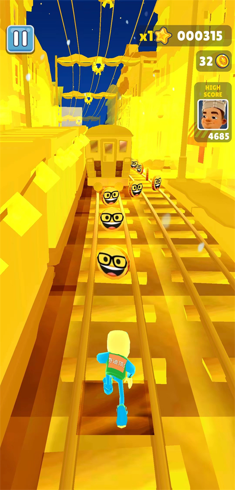 地铁跑酷奇迹顶尖版本是由网络大神定制的全新地铁跑酷版本,又名阿神定制版本,此版本有着独一无二的定制效果,当我们进入游戏之时就能发现,地铁站周围覆盖着一层贵族黄金色,这种颜色是凌驾于所有定制版本之上,宛如一个土豪金版本。除此之外,当我们开始游戏之后,大量的黄金色将会映入眼帘,搭配上定制版的黄色表情金币,让游戏场景之间显得格外协调。不仅如此,地铁跑酷奇迹顶尖版本还定制了众多游戏主角,比如杰克、崔琦、机器人等,将它们的皮肤翻新成全新的色彩搭配,黑白、彩色、纯色等等各种样式搭配都有,让各位玩家的有更多的选择。