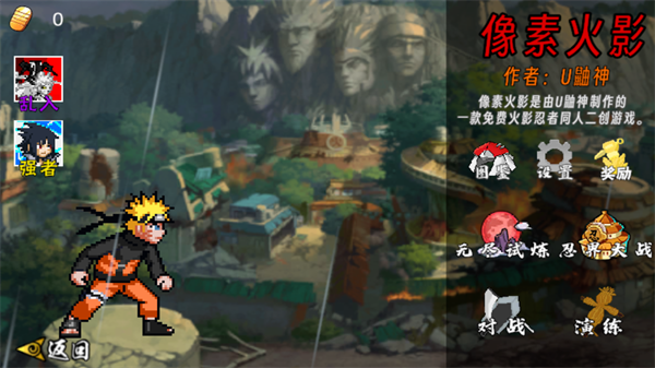 《像素火影次世代》是一款由玩家U鼬神制作的横版像素格斗手游,延续了经典的像素画风和流畅的连招效果。游戏加入了众多火影忍者中的角色,如鸣人、佐助、卡卡西等,还有新加入的角色永恒佐助和千手柱间。最新版本1.21新增了乱入角色骨王和副本佩恩入侵,并对部分角色进行了平衡优化。