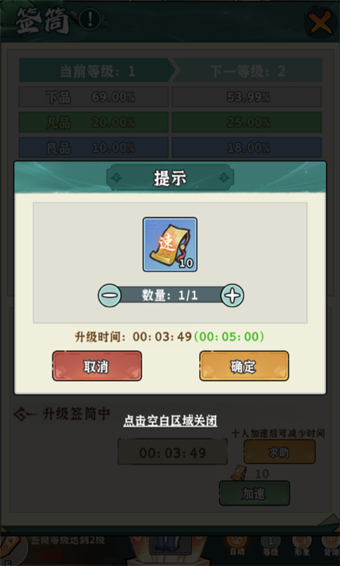 御剑灵域手游是一款玩法轻松的童话休闲类开箱手游。游戏玩法以挂机开箱为主,玩家在里面点击抽签开箱获得不同品质类型的武器、装备、时装,品质根签简的等级相关,升级签简可大大提升高品质装备掉落概率,每抽签一次需消耗一运签,运签可通过完成任务获得或购买礼包,基本上完成任务就不缺了。