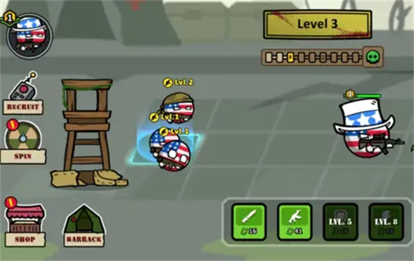 在游戏中,玩家可以升级自己的军队,需要将两个相同类型和等级的球组合起来才能获得更高等级的球。你可以根据敌人的阵型和等级来做出相应的安排,一般来说,玩家的球可以击败同等级和类型的球,所以玩家需要保证敌人有相同数量和质量的部队,然后再考虑更高的部署。升级。对于肉盾单位来说太强或者对于后方攻击单位来说太强都是不平衡的。