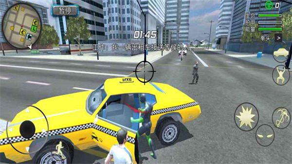 4、玩家还可以在游戏中拦截车辆,通过一个小车按钮来进入车子来开车;