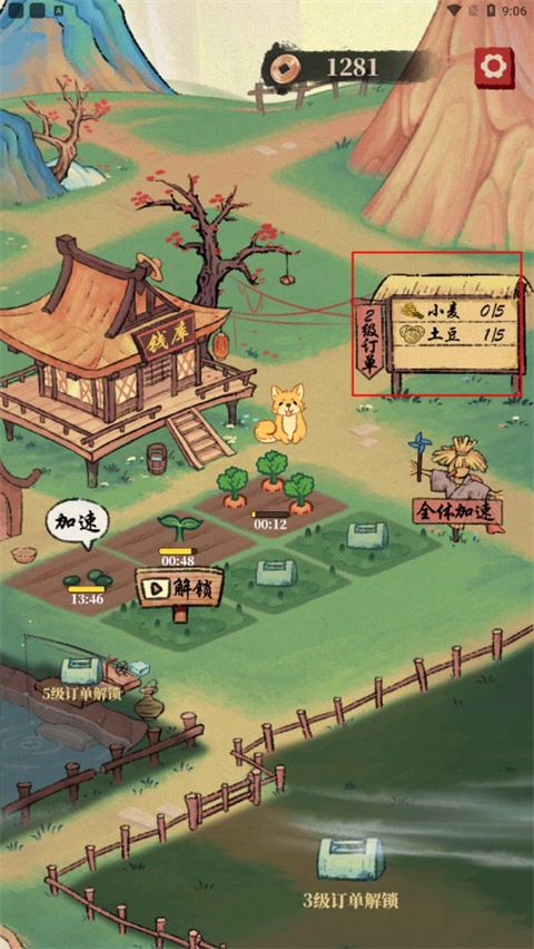 幸福农田是一款经营休闲养成手游,游戏采用卡通画风,背景清新,人物角色独特,在这里玩家将扮将成为一片土地的主人,你需要进行农作物种植和小动物养殖,逐渐获得收益。幸福农田游戏玩法简单,刚开局玩家需要完成系统任务订单,种植小麦、土豆、南瓜、 葡萄、甘蔗、胡萝卜等等作物,待它们成熟点击收获就可以获得相对应的金钱奖励,3级订单完成之后便可开启养殖场,可以养鸡、鸭、猪、牛等等,你还可以利用全体加速按钮让农作物和动物们快速成长起来,这里可以收获更多奖励!