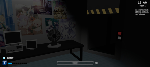 沙勒的五夜后宫是由B站up主“游戏开发部的小筏”制作的一款冒险生存游戏,游戏玩法基于《玩具熊的午夜后宫1》,它将里面的角色全部都替换成了《蔚蓝档案》游戏内的3DQ版美少女。游戏中玩家将扮演的是一位老师,玩家需要利用各种方式阻止你的学生攻击你,并通过监控查看每个同学的位置,及时关上大门防止被学生抓到,努力活到早上6点!沙勒的五夜后宫游戏玩法相对比较简单,玩家只被限制在了一个小房间内,不能出门随意走动,观察学生动向和控制大门开关即可。喜欢的小伙伴欢迎前来本站下载!