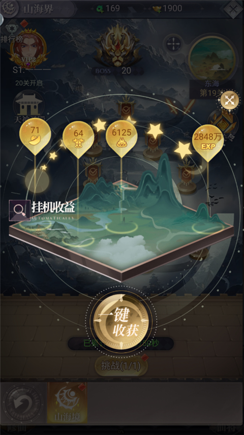 1、游戏在线或离线挂机都可以持续获得元宝,具体方法为点击左侧「闯关」入口,再点击「收益」,即可收取大量元宝。