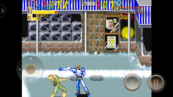 1、下载安装好名将街机游戏联机版后首先点击“投币”,然后点“开始”。