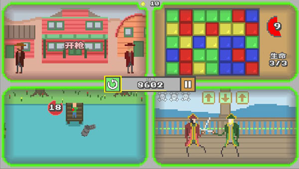 这个游戏最大的特色就是可以在一个界面玩四款不同的街机游戏,失败一次就结束,所以需要特别专注。内置了30多种小游戏,玩法丰富,每次都有新鲜感。尤其是当你同时操作四个游戏时,感觉像是在开四个线程运行程序,脑子容易不够用,但这种挑战也挺有趣的。