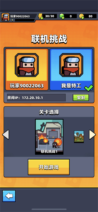 2、特工与搭档需要处于同一个Wifi环境下或者处于热点连接中,才可联机作战;