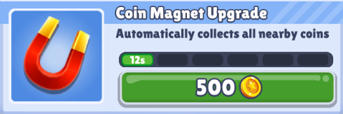 看名字相信已经猜出,磁铁的作用就是吸取金币,当然只有获得更多的金币才能解锁角色,以及购买和升级道具;