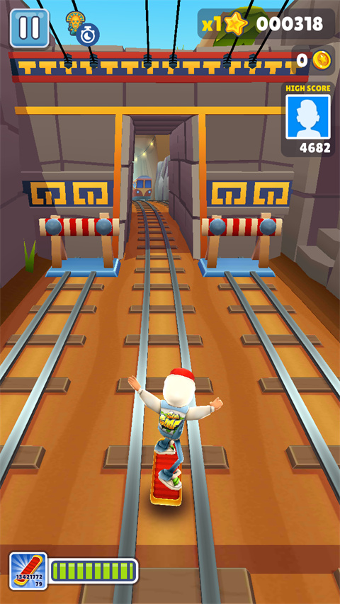 有地铁也会有山洞,中间有一根柱子,左右两边无规律会有火车奔过来,这个时候就要考验玩家的应变能力。