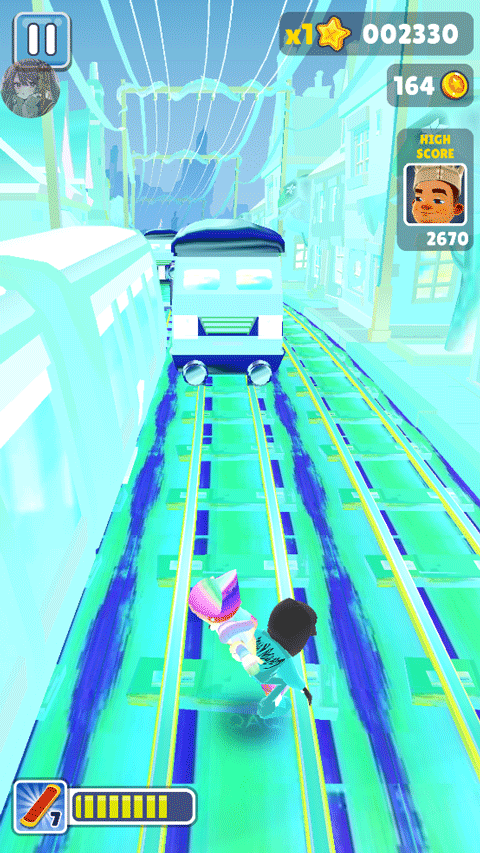 3、滑板可以为你抵挡一次撞击,双击屏幕可以使用。
