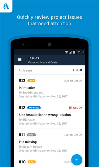 Autodesk bim 360是一款出色的手机施工管理软件,它可以让每个建筑工人随时随地掌握最新的图纸,可以随时随地为施工性能和设计评审做出贡献。在此过程还可以识别和报告项目问题,随时随地在手机上进行计划、修改等操作,让你的项目施工团队不会受到任何影响。
