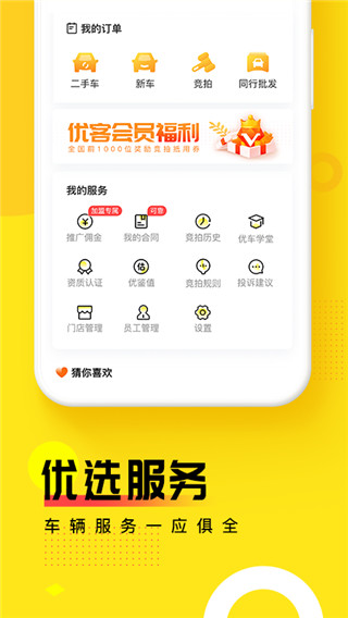 2、提供服务:优车库为加盟商提供C端客户导流、品牌能量加持、Saas管理工具支持、门店形象及物料、销售等。