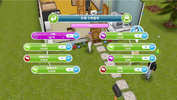 点击其中一方,在弹出的列表里选择【求婚】,再在求婚用品里选择戒指,接下来就完成求婚动作了。两位模拟市民达成了新关系:订婚伴侣。