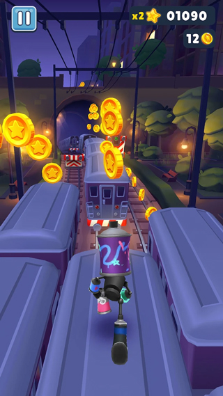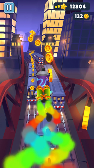 2、地铁跑酷让游戏增加额外的附加值,对用户来说了解世界各地的窗口,满足猎奇心理。游戏本身的设计也是重要因素。游戏玩法操作简单,是玩家打发碎片化时间的不错选择。