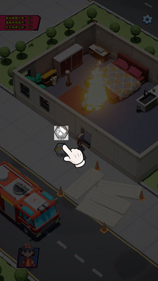 点击人物旁边灭火按钮即可让人物灭火,消灭火灾。