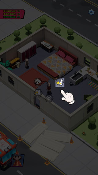 点击人物旁边救人按钮即可让人物救人,解救居民。