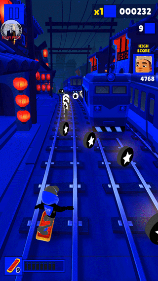 地铁跑酷根灿仿外网版本算是在众多魔改版本中比较出众的了,非常美观的地图风格,手感非常好,金币修改成了星星金币,非常的经典。精美的地图削弱了跑酷游戏的紧张气氛,即使一个不小心撞到墙壁也不会非常懊恼。地铁跑酷并没有像其他跑酷游戏一样只是一味疯跑。它更添加了购买或者兑换的机制,玩家可以使用游戏过程中收集到的金币,购买自己喜欢的道具。丰富多样的搭配让跑酷不失新鲜感,不再千篇一律,它绝对是一款引人如迷的好游戏,也是休息之余最适合的娱乐游戏。