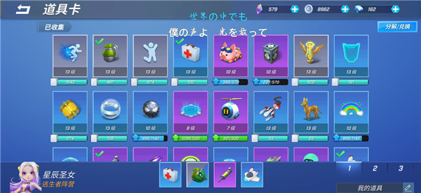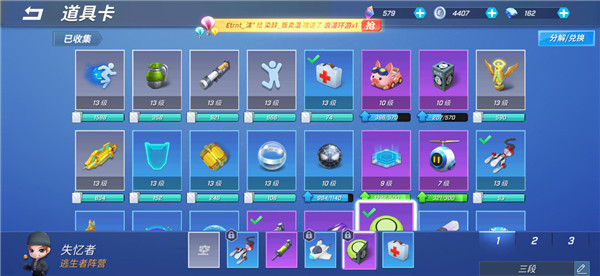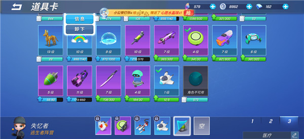 医疗包【锁】,雷【锁】,自走球【锁】,疾跑,车,护盾