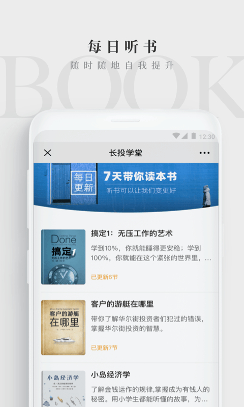 长投学堂是一个为投资理财爱好者们打造的在线理财学习客户端,为广大正在学习投资理财的亲们提供证券、股票、基金、债券等长远期投资产品的在线教学。在这里能让你的的理财能力有翻天覆地的变化,不仅仅只有课程学习资源,还有超多的高清视频,为你详细讲解更多的重点,让你更容易学习。